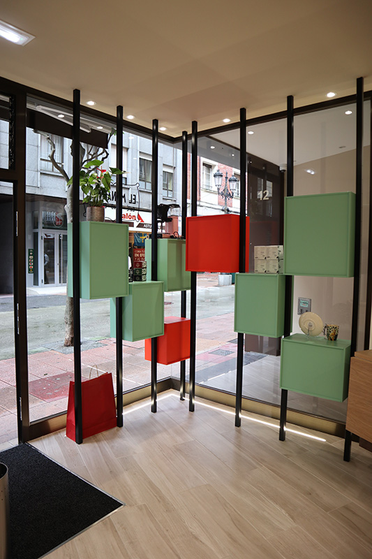 La pintura y la iluminación se unen dando como resultado un local acojedor. Resaltando los productos que el cliente quiere exponer.