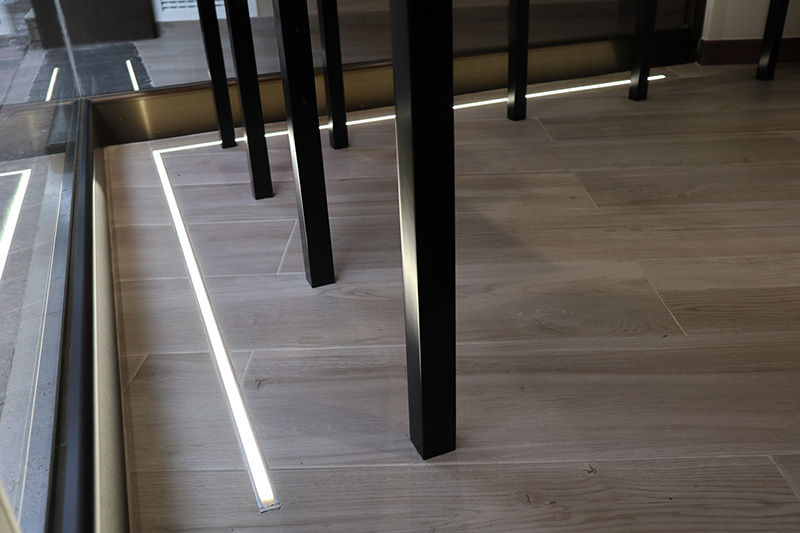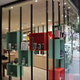Local de unos 60m2 buscamos dar la mayor sensación de espàcio. Diseñado local con todo detalle....fusionando materiales como la ceramica, madera, cristal y aluminio con todos estos materiales en texturas calidas.